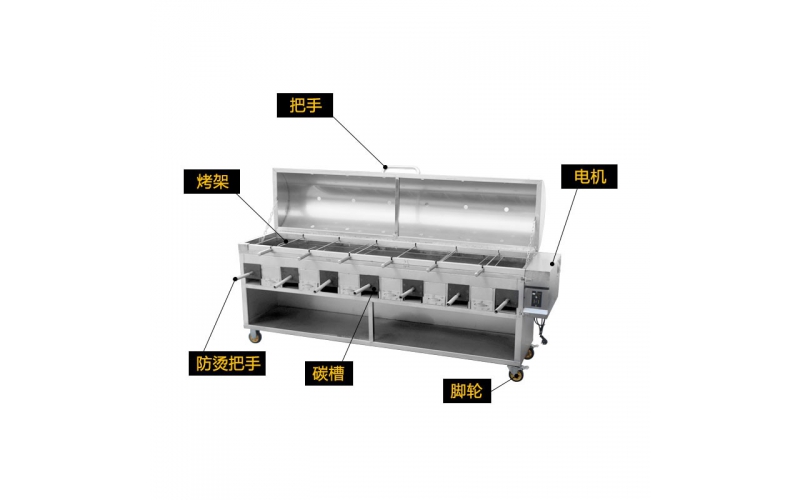 透明電圓形燒烤爐電動(dòng)旋轉(zhuǎn)烤豬無煙訂做木炭300度方形烤鴨爐